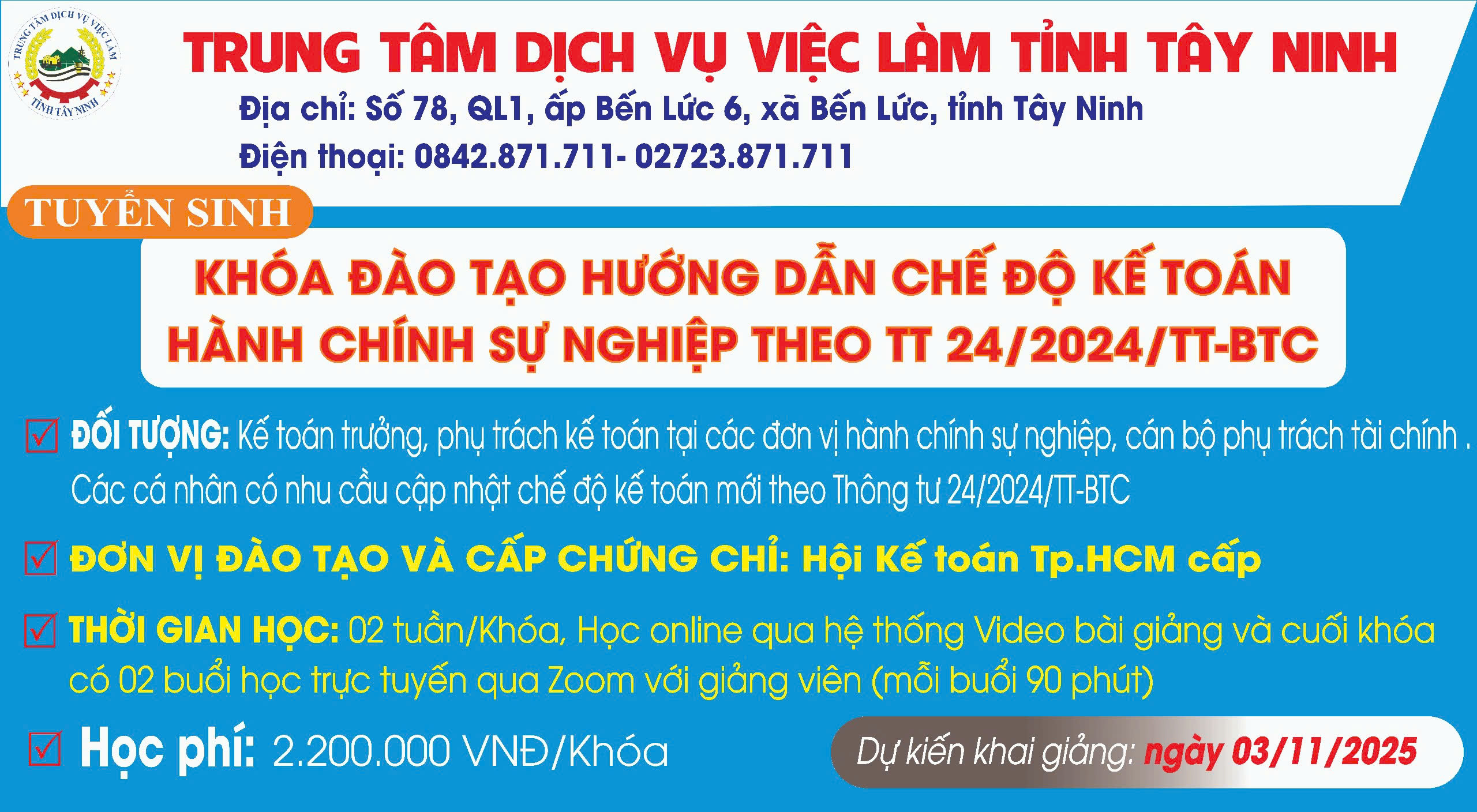 - Vị trí công việc: Chuyên gia (cụ thể, lĩnh vực làm việc: 243 - Nhà chuyên môn về bán hàng, tiếp thị và quan hệ công chúng (Chuyên gia kinh doanh)) - Hình thức làm việc: Thực hiện hợp đồng lao động - Địa điểm làm việc: Lô A33, Khu phố thương mại Mai Anh, Lộc An, Phường Trảng Bàng, Tỉnh Tây Ninh - Thời hạn làm việc: Từ 28/11/2025 đến 27/11/2027 - Mô tả công việc: Tìm hiểu, phân tích thông tin từ thị trường, phản hồi của khách hàng, xu hướng tiêu dùng tại thị trường và những thông tin về đối thủ cạnh tranh trực tiếp. Xây dựng kế hoạch kinh doanh, tổ chức và triển khai chiến lược kinh doanh cho từng khu vực trọng điểm. Theo dõi, giám sát việc thực hiện kế hoạch kinh doanh, đảm bảo đạt mục tiêu kinh doanh đề ra. Tìm kiếm, xây dựng và phát triển mối quan hệ với các khách hàng, đối tác tiềm năng để mở rộng mạng lưới kinh doanh và tăng doanh số. Đề xuất các chính sách bán hàng và giá cả cho các sản phẩm của công ty để đảm bảo sự cạnh tranh và tăng doanh số bán hàng.Yêu cầu công việc:
